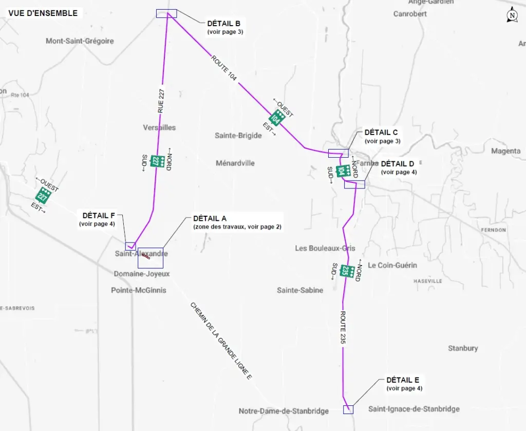 Pour les camions, vous pouvez contourner ce chemin en passant par le rang des Soixante (route 227), la route 104 et la route 235.
