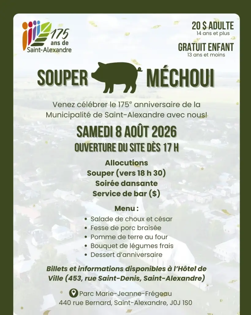 Souper méchoui 175e anniversaire de la Municipalité de Saint-Alexandre